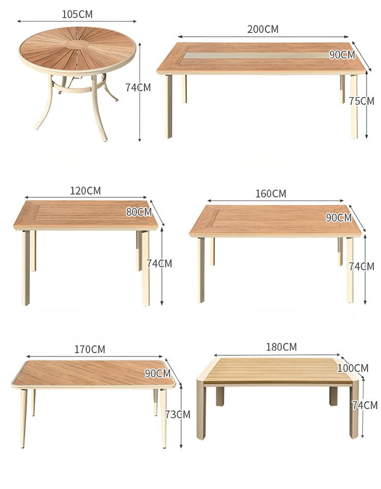 • Wood-plastic composite (WPC) table surface: resistant to corrosion and weather