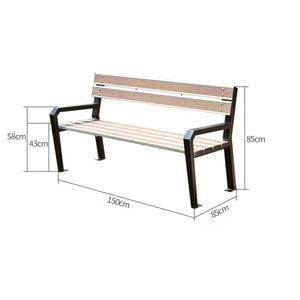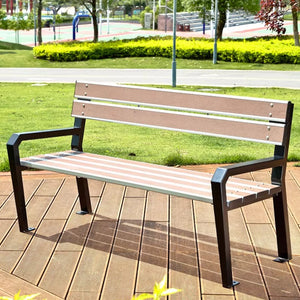 This plastic wood park bench with backrest is designed for parks, residential communities, courtyards, and public outdoor spaces. Combining plastic wood seat slats with aluminum edging and a galvanized steel frame, it delivers excellent durability, weather resistance, and a clean, modern appearance suitable for long-term outdoor use.