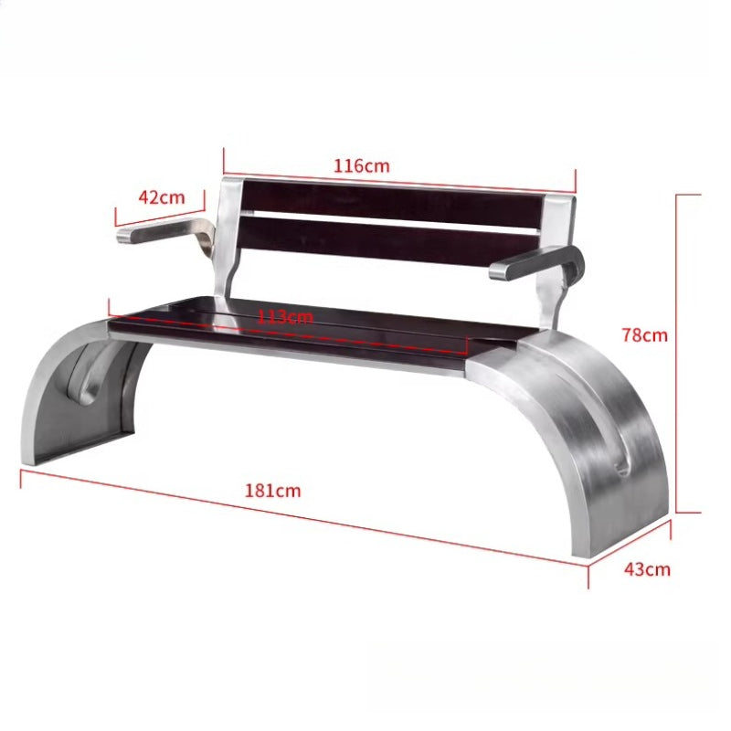 This Stainless Steel & Keruing Wood Park Bench is designed for plazas, parks, landscape projects, and public outdoor spaces. Combining a stainless steel frame with durable keruing wood slats, it offers a balanced blend of strength, natural texture, and modern outdoor performance.