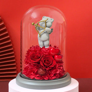Preserved Flower Gift Box with Teddy Bear