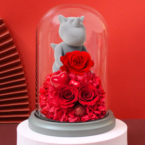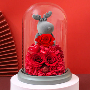 Arrangement Type: Preserved flower gift box with decorative figure