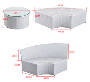 • Premium Rattan: The sofa is crafted from durable, weather-resistant rattan, ensuring long-lasting performance in outdoor environments. Its intricate weaving adds a touch of elegance and charm.
