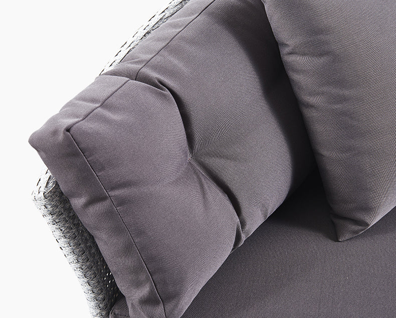 • Comfortable Cushions: The thick, soft cushions are upholstered in water-resistant, anti-fade fabric, ensuring comfort and durability. Designed to resist stains, moisture, and mildew, they are ideal for outdoor use.