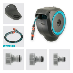 | Included Components | 1x Wall-Mounted Hose Box RollUp S, 1x Wall-Bracket incl. Screws, 1x 1.5m Connection Hose, 3x Tap Connector, 2x Hose Connector, 1x Water Stop, 1x Cleaning Nozzle |