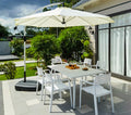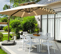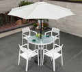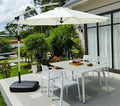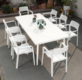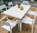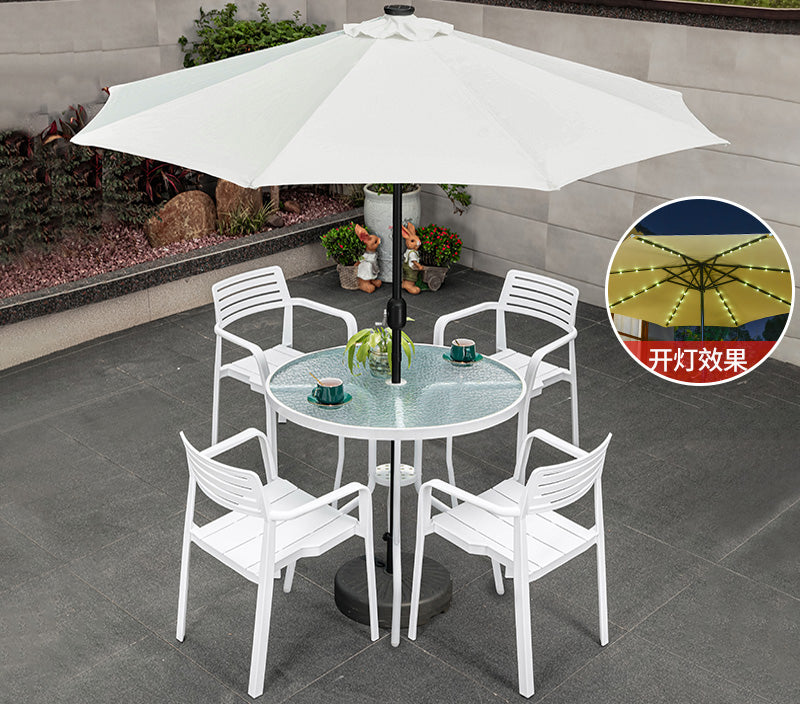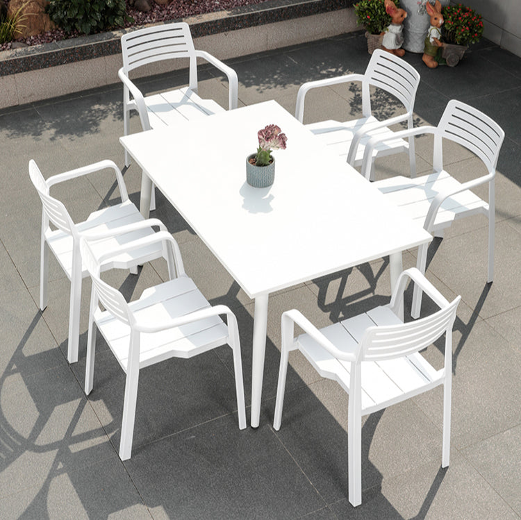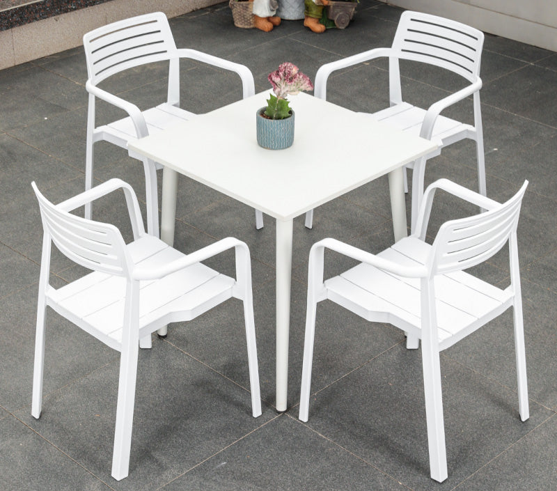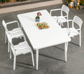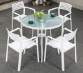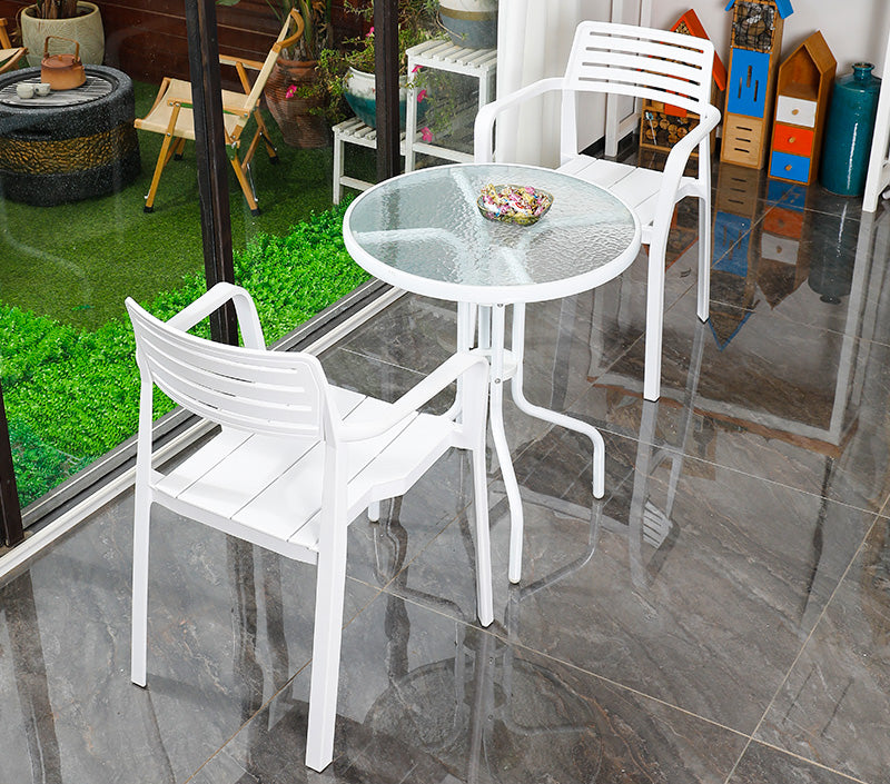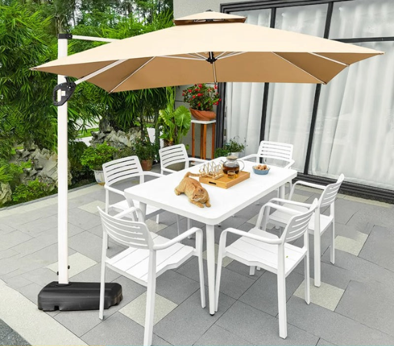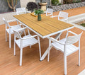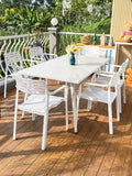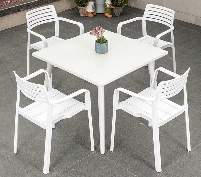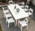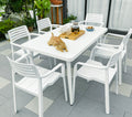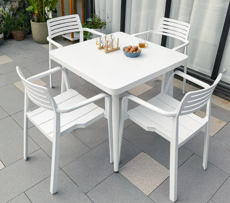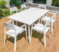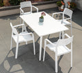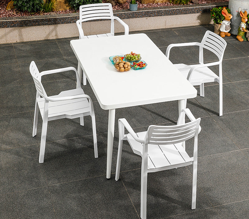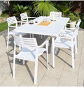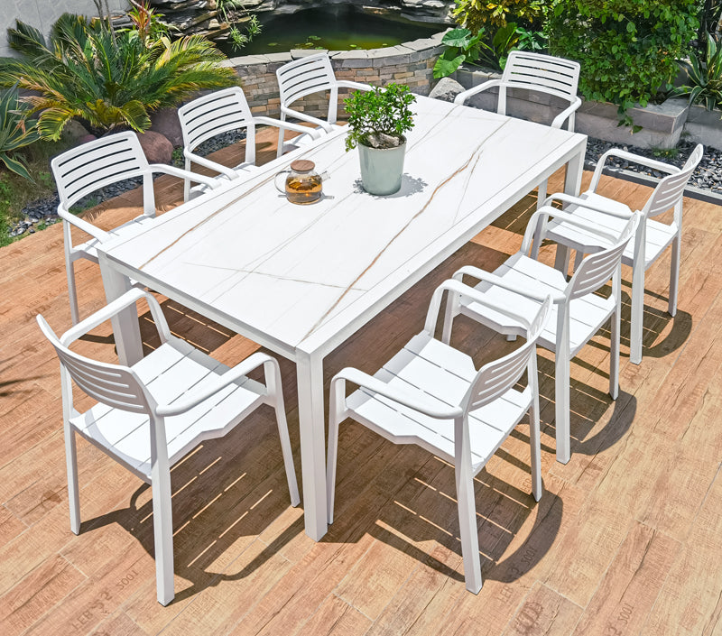 This elegant outdoor dining table set is available in various material options to suit your style and durability needs. Choose from table surfaces made of wood-plastic composite (WPC) for a natural wood finish, carbon steel for added strength, glass for a modern look, or aluminum alloy for lightweight durability. Paired with matching chairs, this set is perfect for outdoor dining on patios, gardens, or terraces.