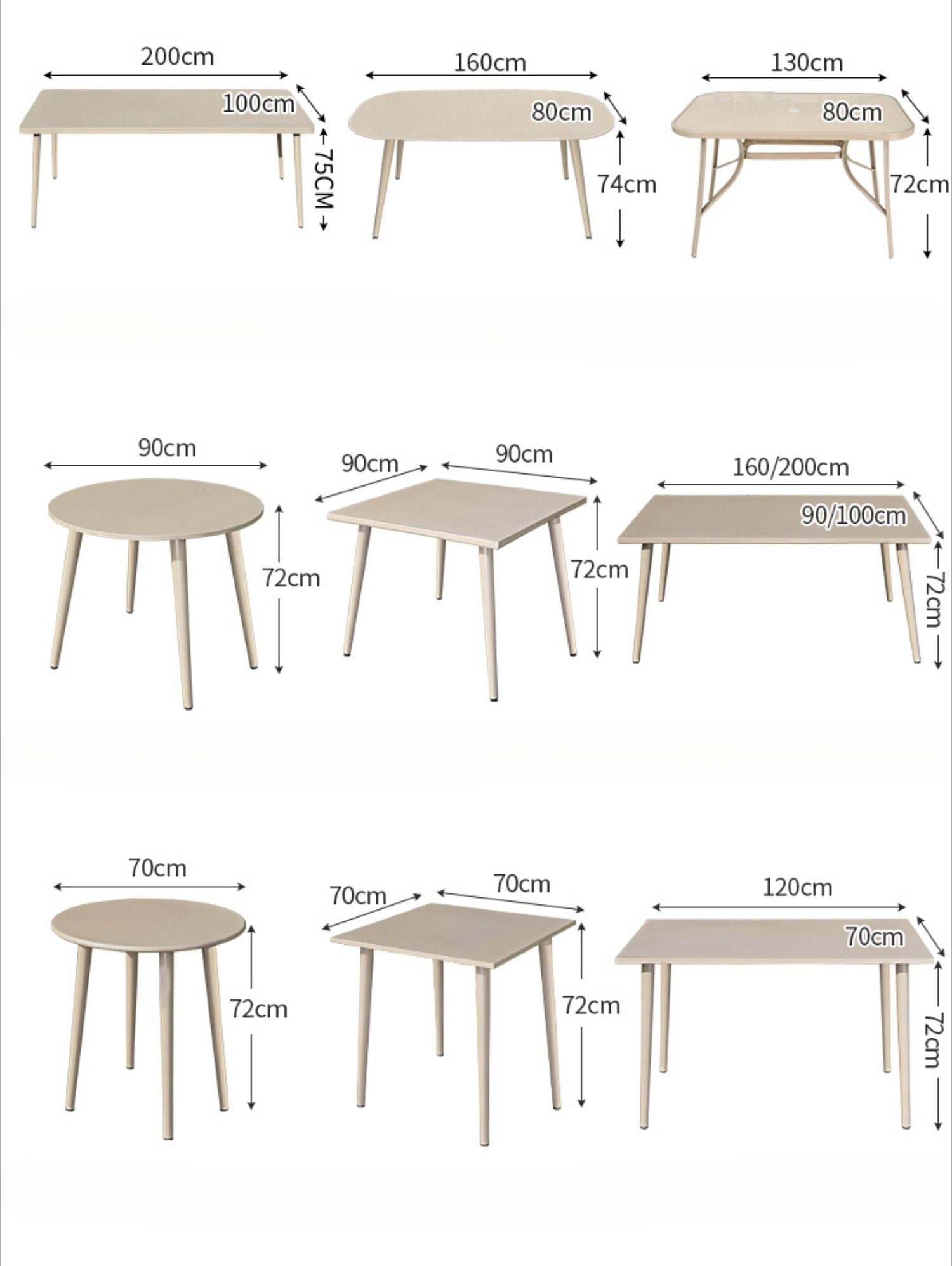 Enhance your outdoor living with our versatile outdoor dining table sets, available in round, rectangular, and square designs. These sets are crafted with a combination of high-quality materials, including tempered glass, carbon steel, and aluminum alloy, ensuring durability and resistance to weather elements. Ideal for patios, gardens, terraces, or poolside, each set includes ergonomically designed chairs that match the modern aesthetics of the tables. Whether hosting gatherings or enjoying everyday meals, these sets offer a blend of style and functionality, making them the perfect choice for any outdoor setting.