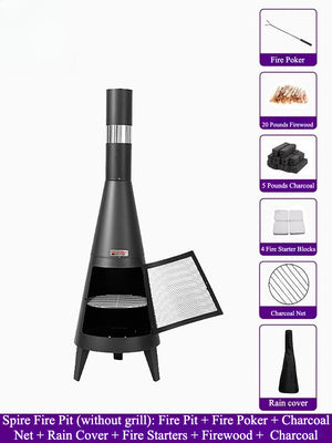 Customizable Variants: Choose from multiple configurations to suit your needs, including options with rain covers, fire starter blocks, firewood, and barbecue charcoal.