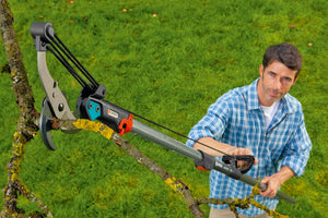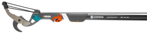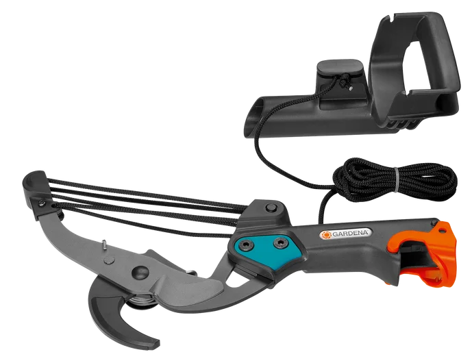 GARDENA 組合系統 Anvil 樹枝修剪機具有 5 倍傳動裝置,非常適合修剪高樹上較老的木質樹枝。與 GARDENA 組合系統伸縮手柄相結合,無需梯子即可輕鬆從地面上砍下樹枝,並將樹枝修剪至很高的高度。安全鎖可確保連接牢固。整合的雙槓桿變速箱和 5 倍變速箱可以大大節省精力。這保證了毫不費力地切割高達約 100 厘米的樹枝。直徑35毫米。不沾塗層刀片具有經過調整的幾何形狀,用於固定樹枝(切割時樹枝不能移動),確保乾淨、精確的切割,並且易於清潔。特別方便:修枝剪可以掛在樹枝上,修剪起來更省力。由於可調節的 D 型手柄,可以實現強大、方便且符合人體工學的操作。 D 型手柄具有繩索儲存裝置(繩索在工作/儲存過程中不會纏結),繩索末端在兩側都有固定裝置。拉繩長 4.7 m,防撕裂且易於操作。 Combisystem Anvil Branch Pruner 也可以在沒有手把的情況下使用。