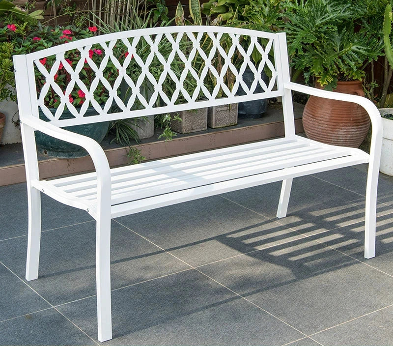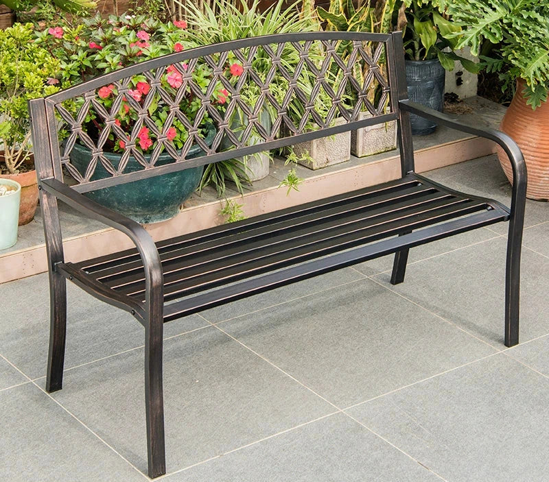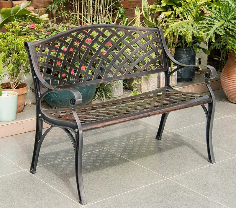 使用復古風格的戶外金屬長凳來美化您的戶外區域——它結合了功能性、彈性和古典美感,可在任何花園環境中打造完美的放鬆場所。